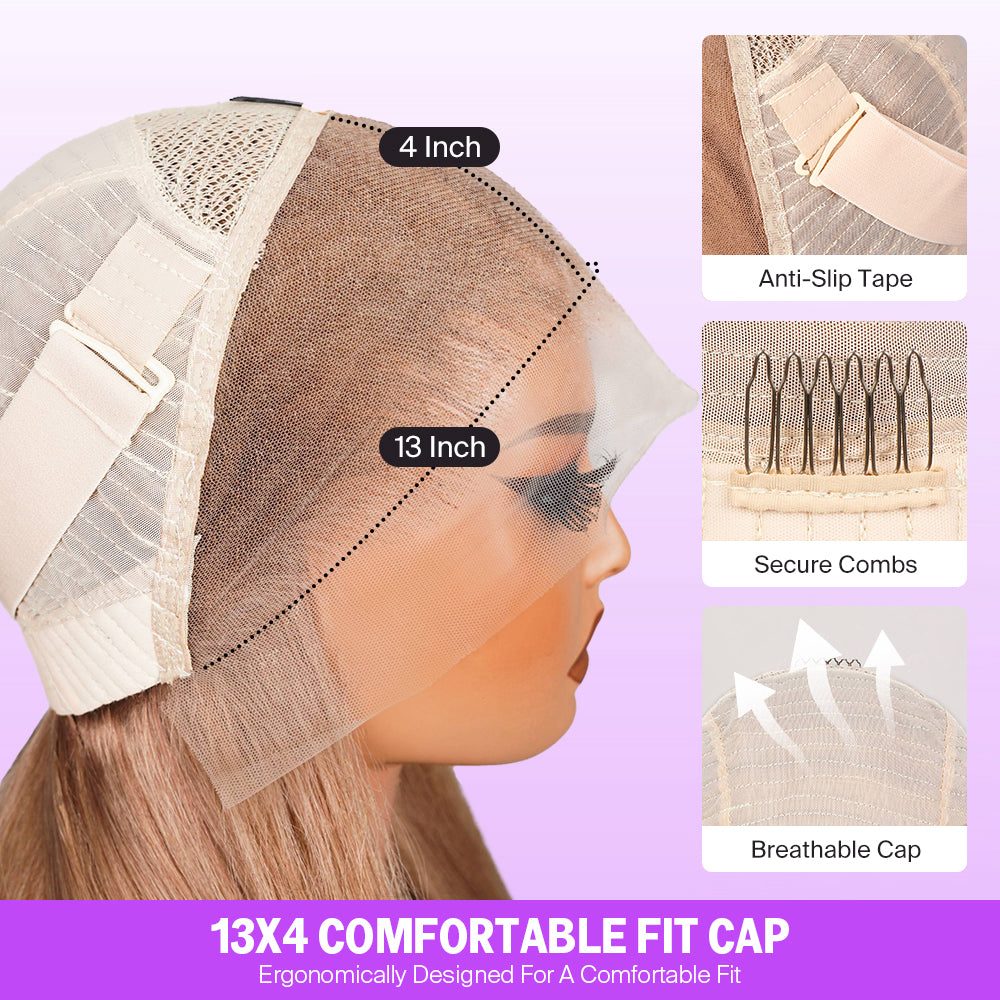 Megalook 13x6 Three-Go™ Glueless Wig Ash Blonde Highlights On Brown Hair Body Wave With Drawstring 100% Human Hair