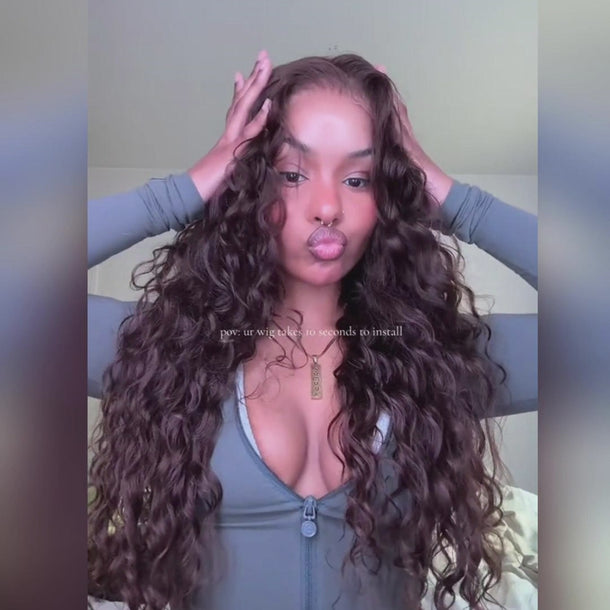 Megalook 13x6 Three-Go™ Chocolate Brown Glueless Wigs Bohemian Curl with Drawstring 100% Human Hair Wig