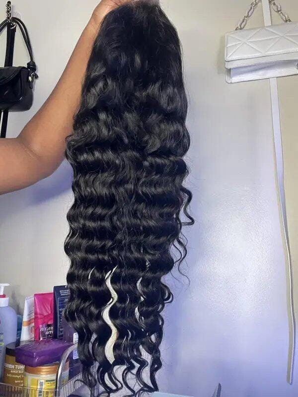 Megalook 6x5 Invisible Knots Glueless Loose Deep Wave Wigs Pre-cut Lace Natural Black Beginner Friendly