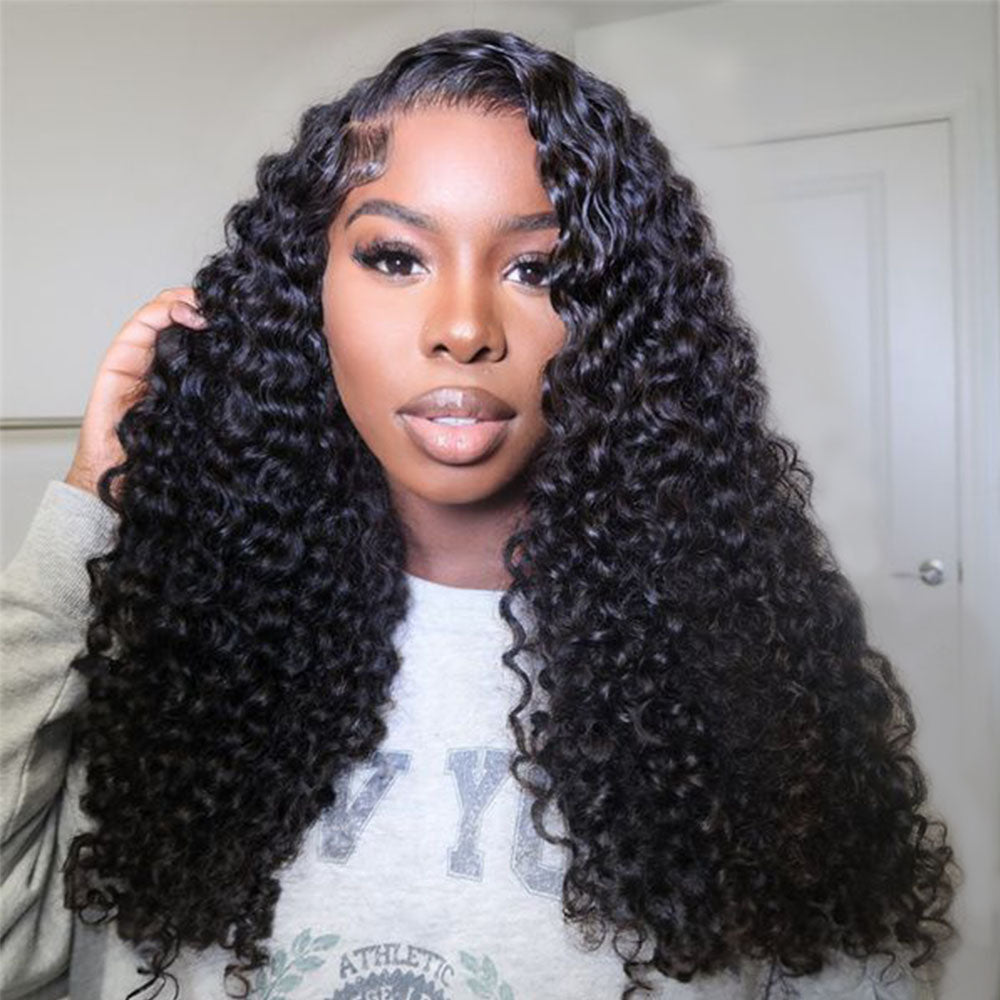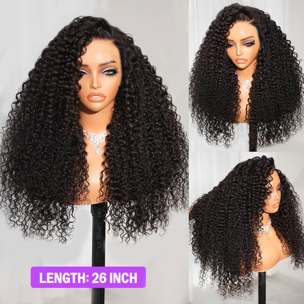 Megalook 360 Full Lace Glueless Jerry Curly Wigs Invisi Drawstring Natural Black Pull & Go