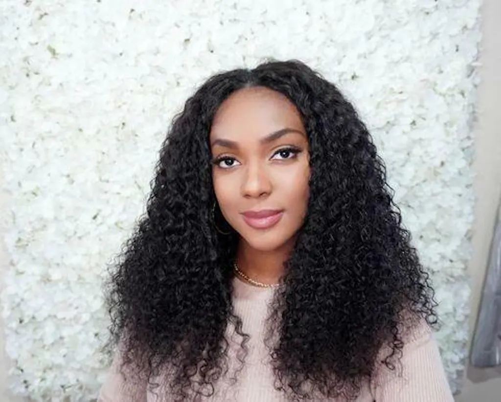 Megalook V Teil glueless Jerry lockige Perücken Invisi Kordelzug natürlich schwarz nahtlos tragbar