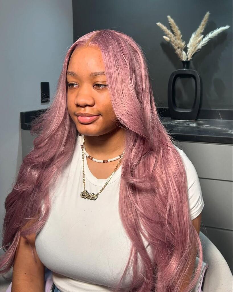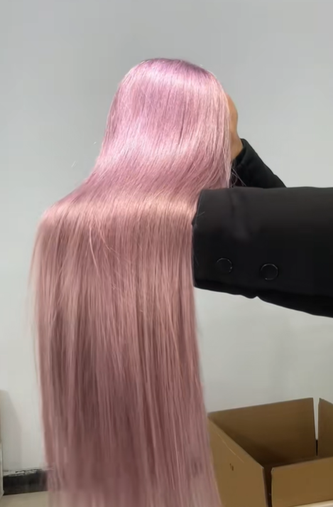 Megalook 13x6 Three-Go™ Asche Lila Klebefreie Perücken Seidig Glatt Mit Kordelzug 100% Echthaar Perücke