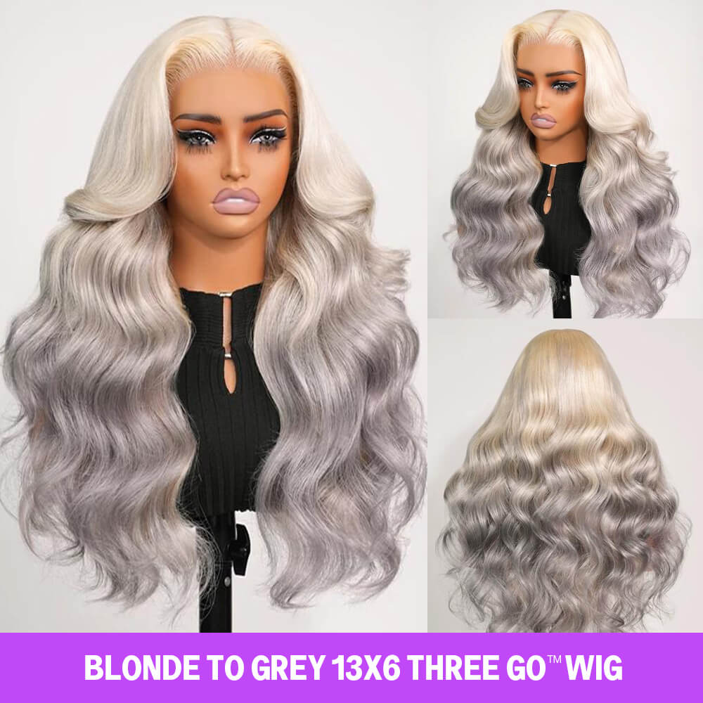 Megalook 13x6 Three-Go™ Blond zu Aschgrau Ombre Klebefrei Lockere Körperwelle mit Kordelzug 100% Echthaar