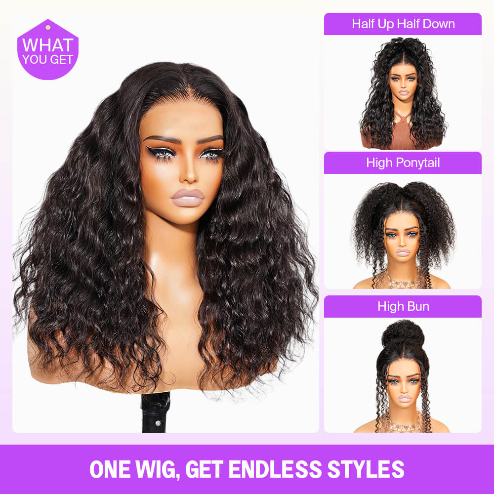 Megalook 3D Spitzen-Halbperücke ohne Kleber Boho Lockenhaar mit atmungsaktivem Kuppelmütze 6 Zoll tiefer Scheitel
