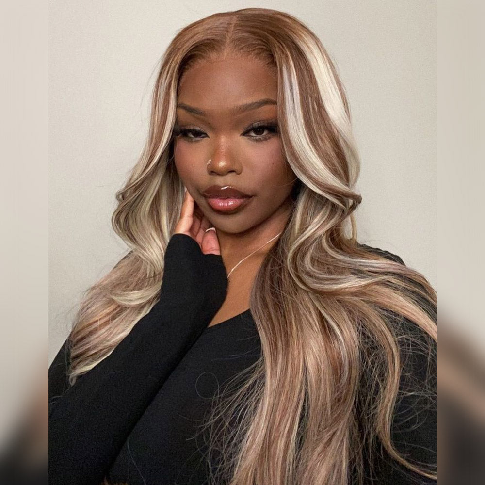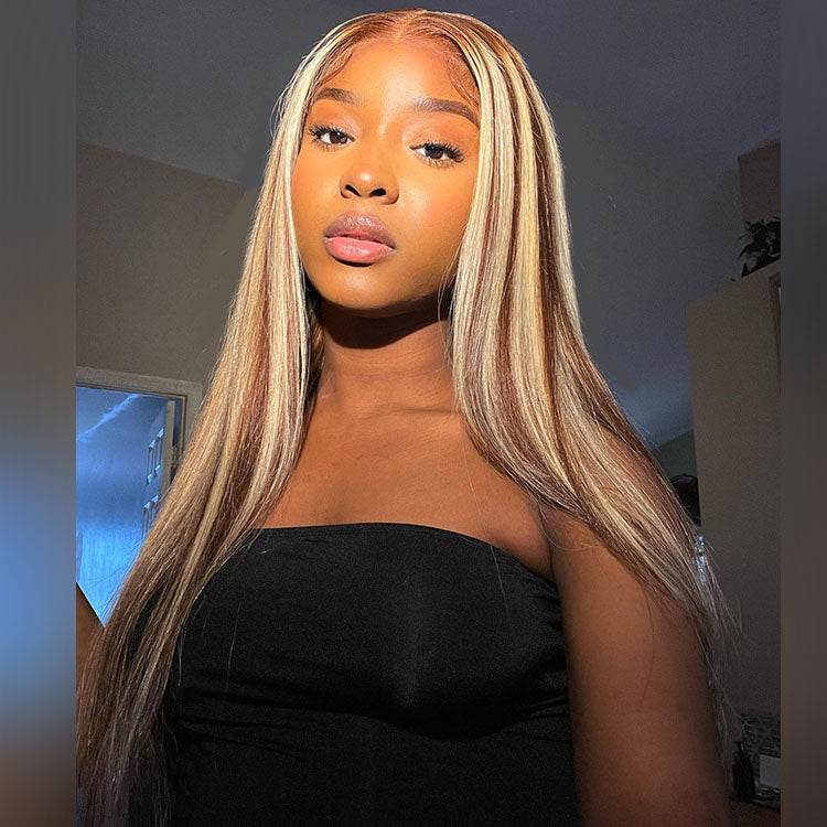 Code de réduction 100 $ OFF : MS100 | Perruques droites 5X5 en dentelle couleur miel avec mèches blondes P12/613
