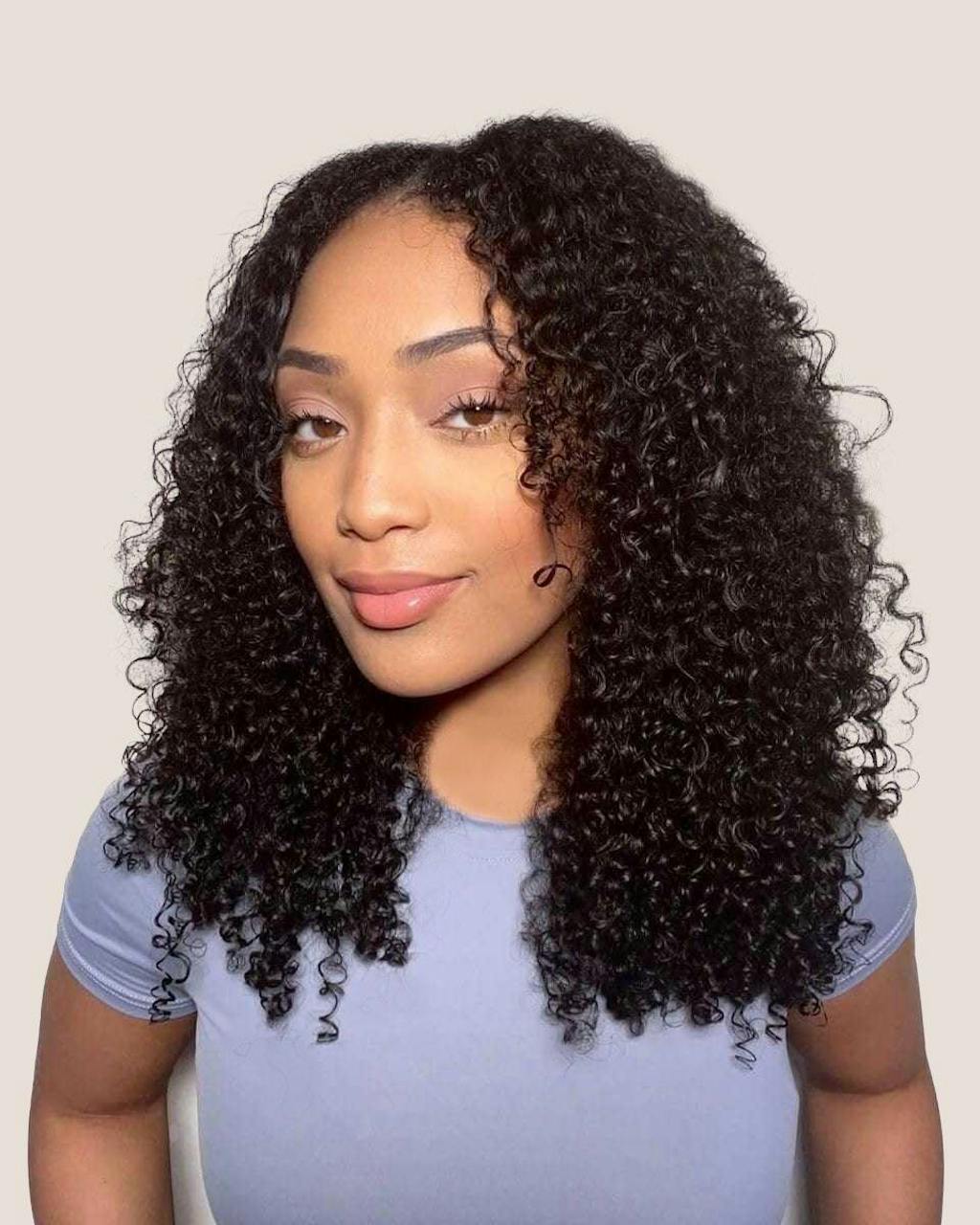 Perruque Megalook 13x6 Three-Go™ sans colle birmane bouclée avec cordon de serrage et extrémités en spirale à doigts, tient bien les boucles