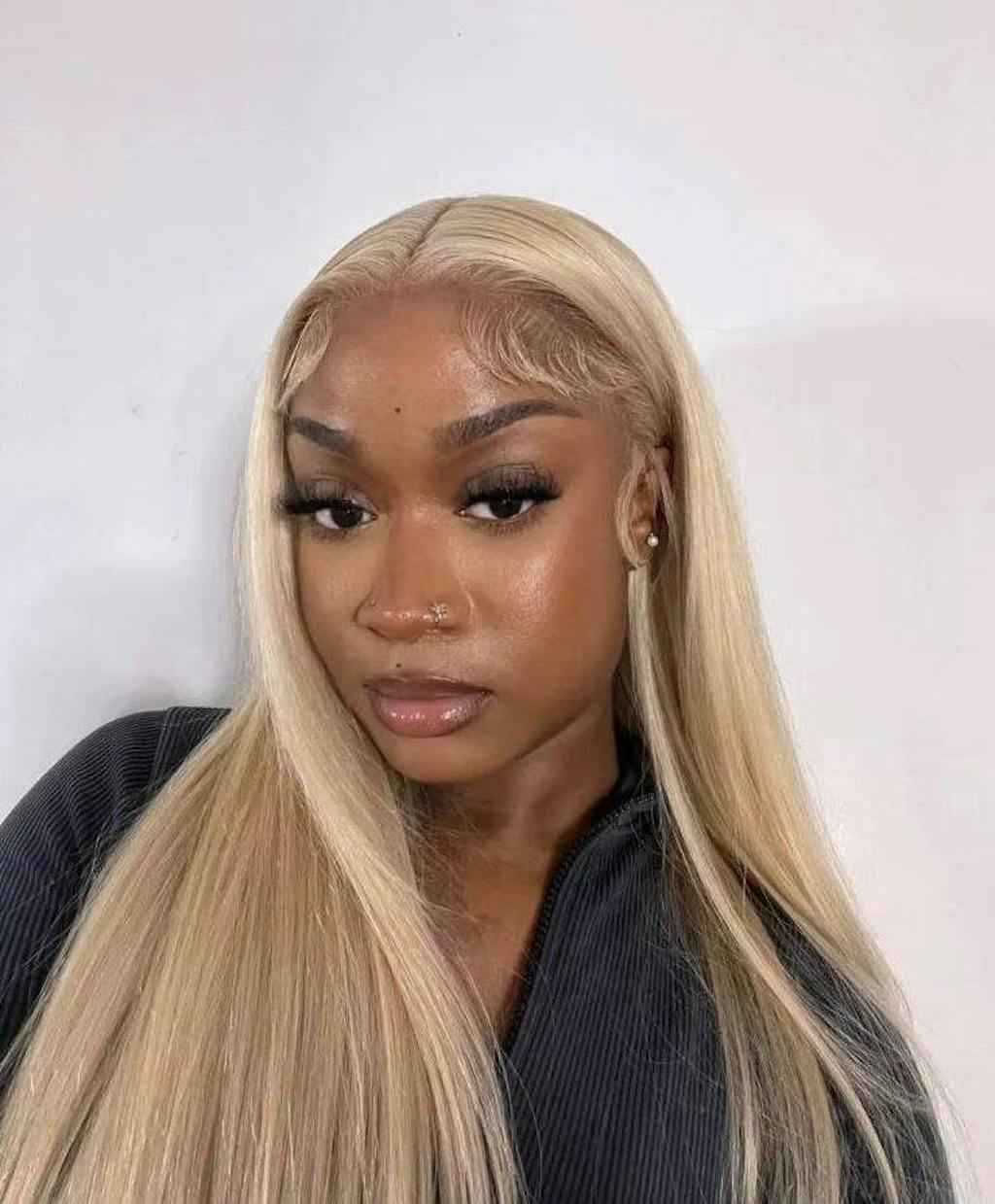 Megalook 6x5 Nœuds Invisibles Perruques Lisses Soie Blonde 613 Sans Colle Pré-découpées Dentelle Facile pour Débutants