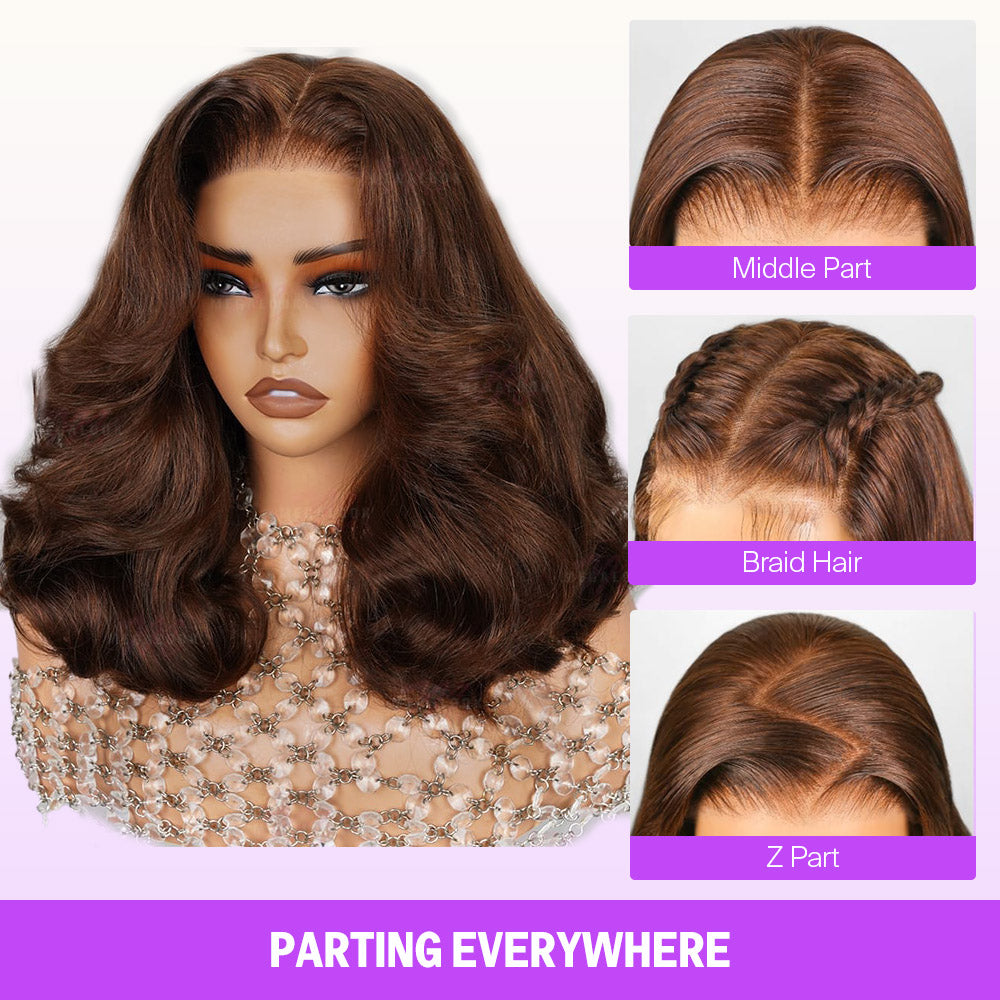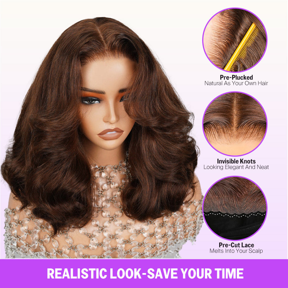 000{Super Vente} Megalook Salon Series Vague Nuage Super Double Tiré #4 Chocolat Brun Pré Découpé Sans Colle 6x5 Fermeture en Dentelle Perruque Bob