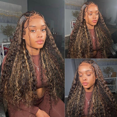 Megalook 13x4 Dentelle Frontal Balayage Mèches Vague d'Eau Nœuds Invisibles Bords Naturels
