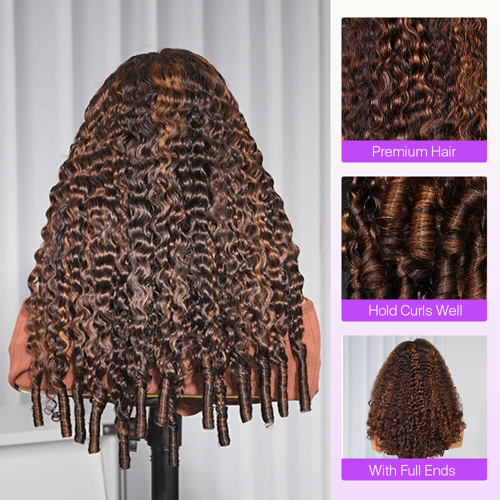Megalook 13x6 Three-Go™ Dark Brown Glueless Wigs With Highlights Burmese Curly With Finger Coil Ends