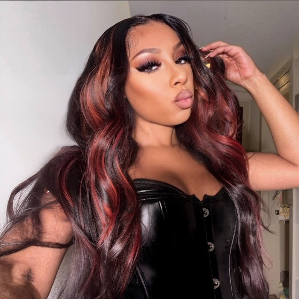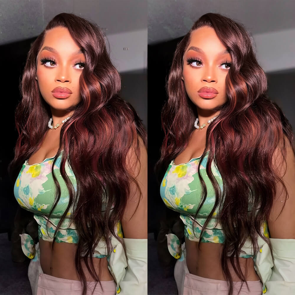 Megalook 6x5 Invisible Knots Glueless Dark Auburn Brown With Highlights Body Wave Wigs Pre-cut Lace Beginner Friendly