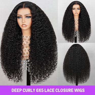Megalook 6x5 Invisible Knots Glueless Loose Deep Wave Wigs Pre-cut Lace Natural Black Beginner Friendly