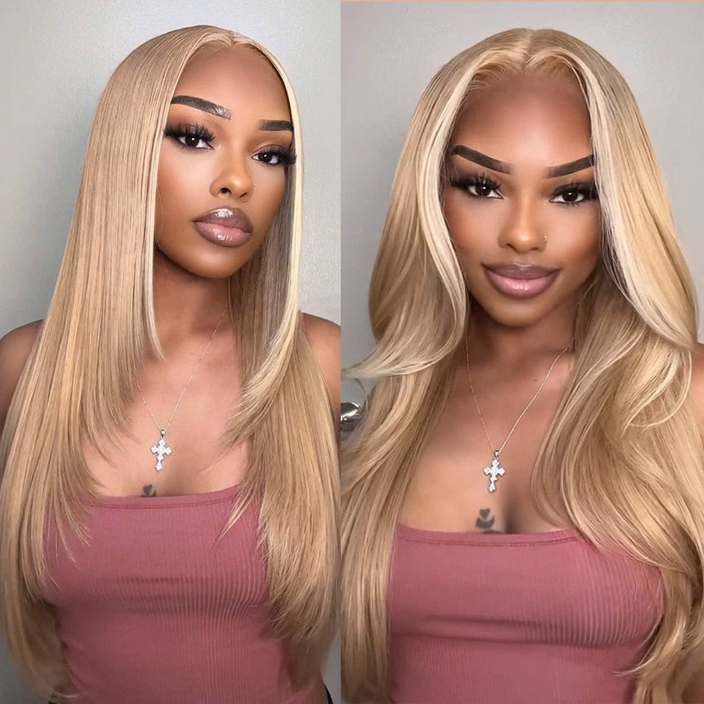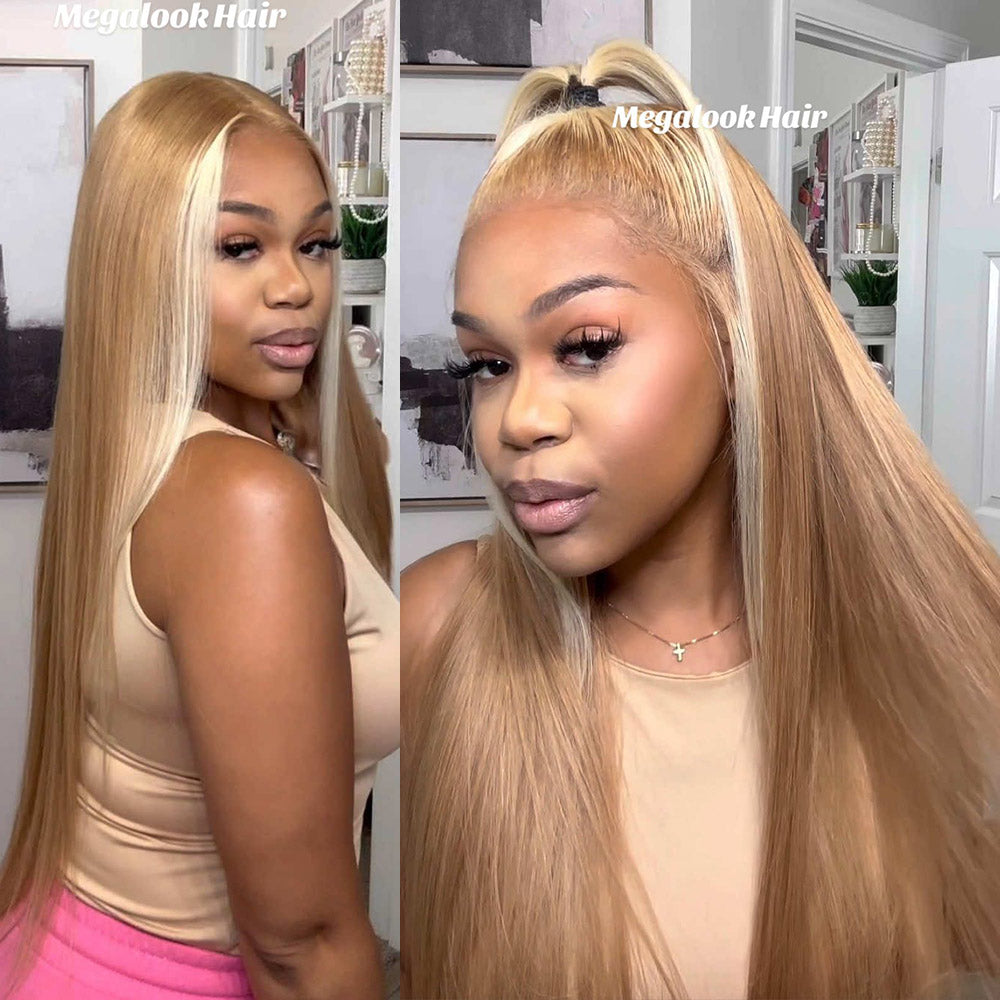 Megalook Bogo Free 6x5 Pre-Cut Lace Milk Tea Brown With Highlight Straight Wigs Invisible Knots Natural Hairline